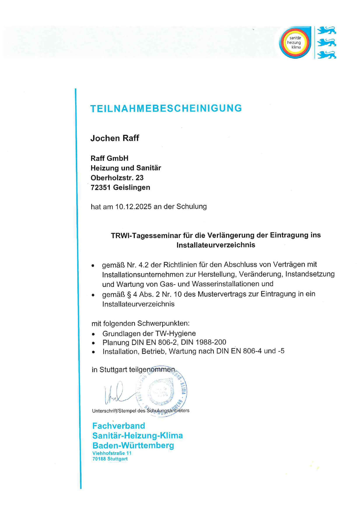 Geschäftsführer, Gas- und Wasserinstallateur, Meister für Zentralheizungs- und Lüftungsbau